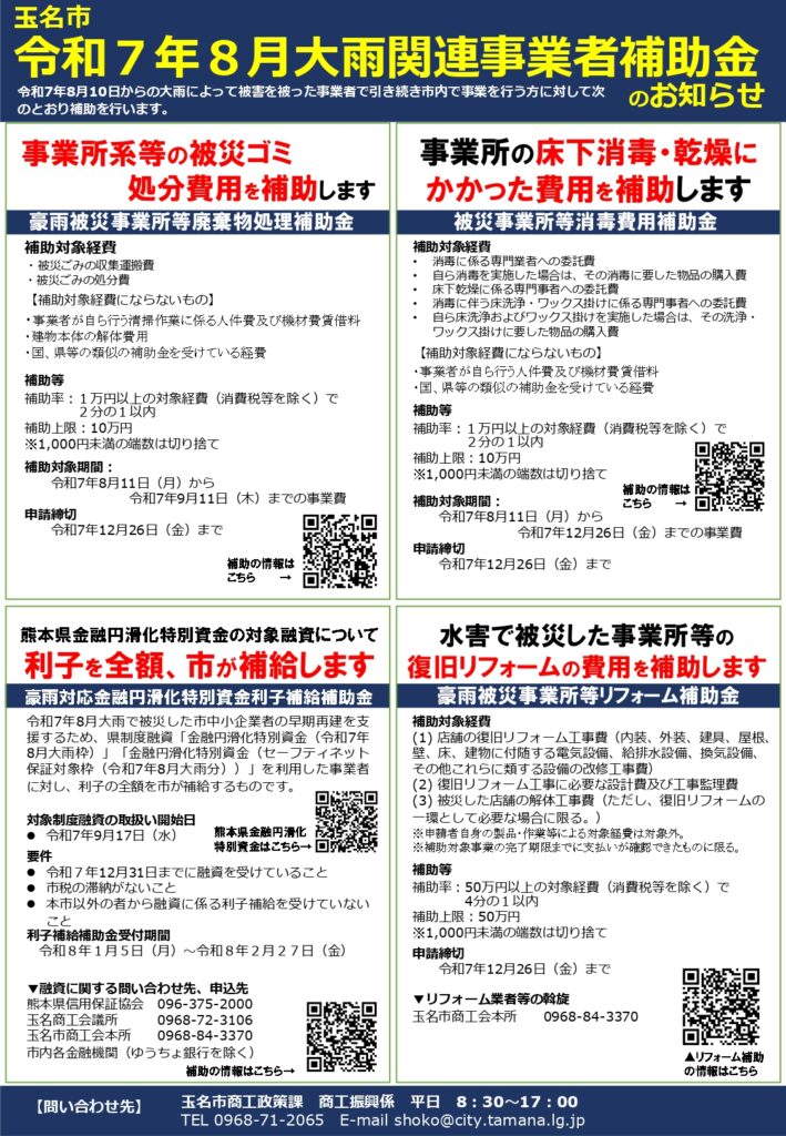 令和7年8月大雨関連事業者補助金(玉名市)のお知らせ