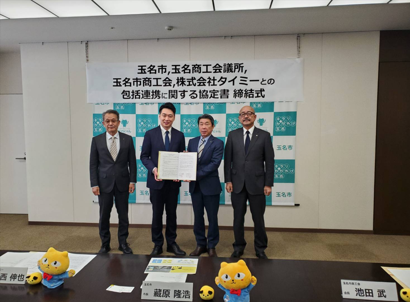 令和8年1月20日に(株)タイミー、玉名市、玉名市商工会と連携協定を締結いたしました。